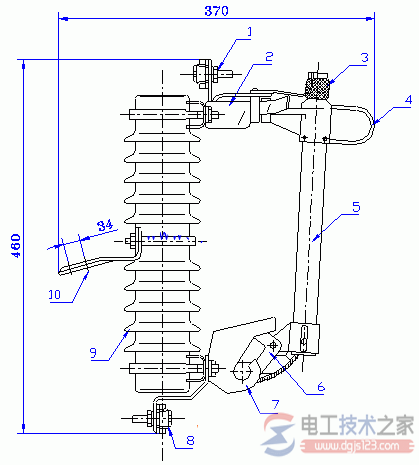 有關(guān)跌開(kāi)式熔斷器主接線圖的具體規(guī)定,跌開(kāi)式熔斷器的安裝應(yīng)符合某些規(guī)定,包括與垂線的夾角、相間距離、對(duì)地面距離,熔絲位置應(yīng)安裝在消弧管中部偏上等。